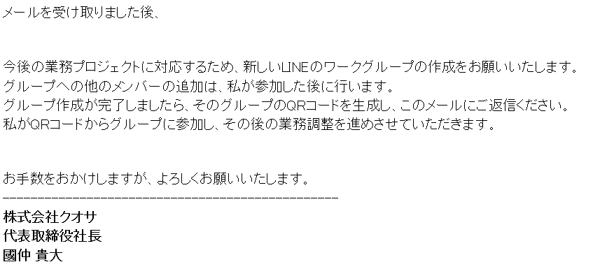 企業の役員や社員になりすました詐欺メールを送信し、LINE グループの作成の指示をしたり、